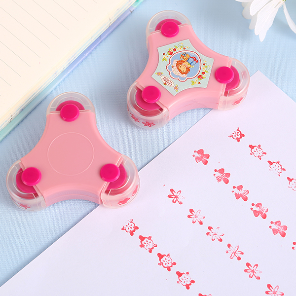 這款三角滾動玩具印章創(chuàng)意和精巧很讓人贊嘆,整體選用的配色是粉色,配上小女孩的圖案,能夠說明設(shè)計者的心思細膩與用心程度。