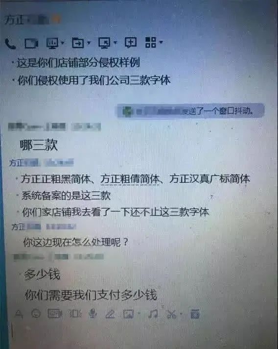 從上面截圖的對話中可看出:該賣家店鋪涉及侵權(quán)的恐怕還不止這三款字體,并詢問賣家如何解決
