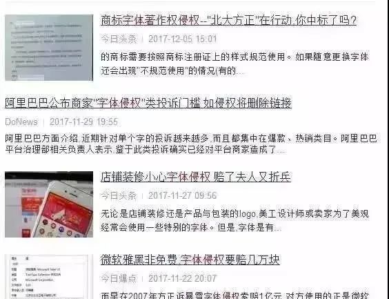 當(dāng)你在瀏覽器里搜索“字體侵權(quán)”,你會發(fā)現(xiàn),僅一個月內(nèi)就有4條相關(guān)新聞。