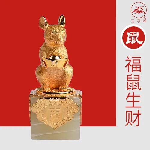 鼠印章,位居十二生肖首位,夜晚十一時(shí)至凌晨一時(shí),屬子時(shí),又稱為“子鼠”,象征富裕有才。
