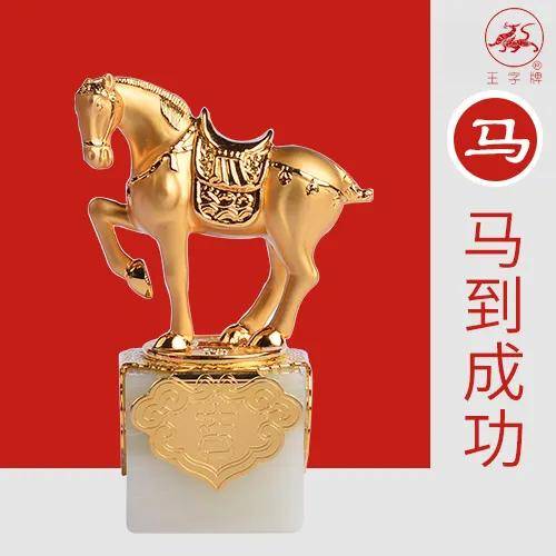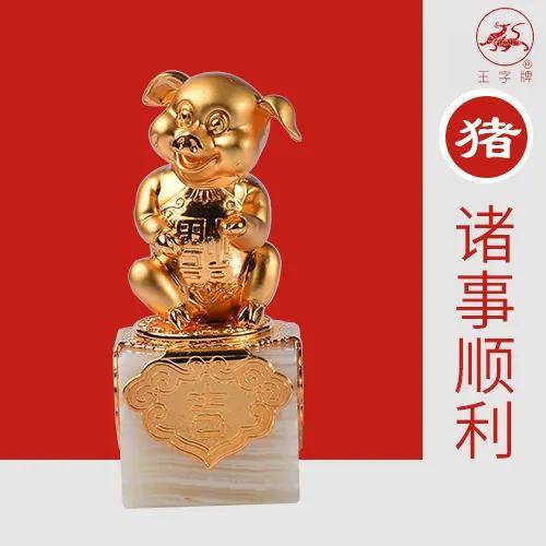 王字牌十二生肖印章由氣質(zhì)高雅的中國(guó)四大名玉——岫玉,配合鍍沙金、亞金的十二生肖塑像組合而成。
