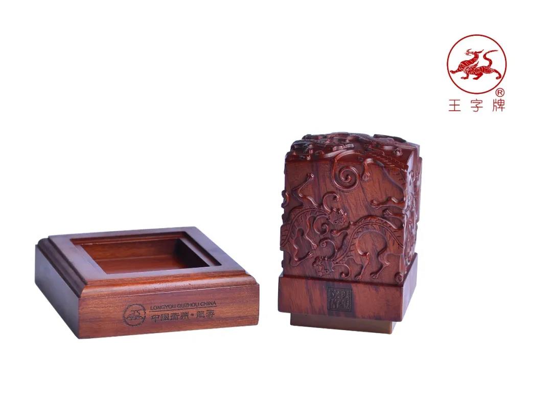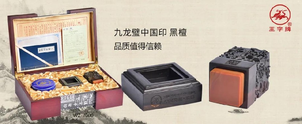 王字牌九龍璧中國印采用石中珍品龍游黃蠟石為材質(zhì),以名貴紅木雕塑成九龍柱形主體,集高貴、典雅、華美為一身, 以示事業(yè)蒸蒸日上,天長地久。每方印章都由篆刻大師量身精雕而成,是專屬您的傳世藏品。