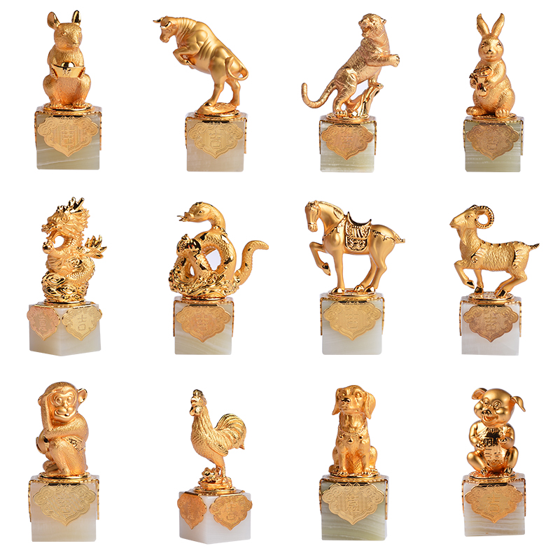 生肖作為悠久的民俗文化符號,科力印章以生肖為主題,打造出了12款帶有獨(dú)特民俗文化的生肖禮品印章,分別為:鼠、牛、虎、兔、龍、蛇、馬、羊、猴、雞、狗、豬。印章主體長4.4cm寬4.4cm高6.0cm,玉面長3.4cm寬3.4cm高3.1cm,其材質(zhì)采用的是24K鍍金,玉面采用精品岫玉。金身玉面,高貴而優(yōu)雅。還等什么,科力禮品印章你值得擁有!